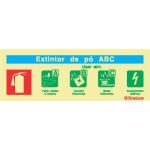 Sinal de extintor de CO2, em PVC rígido fotoluminescente, largura de 240 mm e com altura de 85 mm.