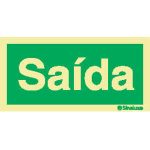 Sinal rectangular verde em PVC fotoluminescente de indicação de saída para baixo, largura de 200 mm e altura de 100 mm.