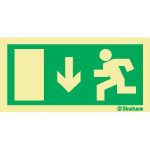 Sinal rectangular verde em PVC rígido fotoluminescente de indicação de “Saída” com altura de 100 mm e largura de 200 mm.
