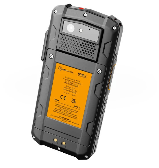 O IS540.2, com tecnologia 5G, avança ainda mais, tornando-se o smartphone 5G mais inteligente e inovador para zonas ATEX 2/22. Possui um ecrã Full HD de 6 polegadas, equipado com um processador Qualcomm QCM6490 Octa Core e 8 GB de RAM, onde o sistema operativo Android 12 funciona perfeitamente, garantindo um rápido processamento de dados para as aplicações industriais mais exigentes. Com uma câmara principal de 48 MP, o IS540.2 oferece a mais alta qualidade de imagem.