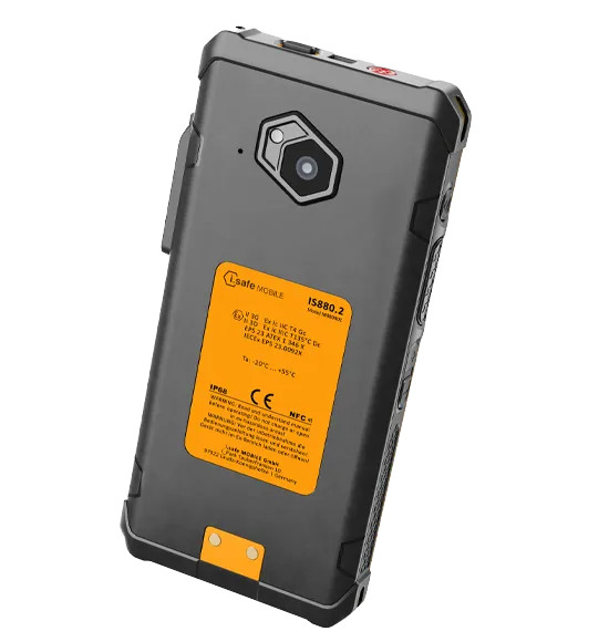 O IS880.2 da i.safe MOBILE é um smartphone 4G LTE com Android™ 14, elegante e leve para zonas ATEX 2/22. Combina um design moderno com um conjunto de recursos poderosos para oferecer o melhor desempenho em qualquer ambiente. Com uma tela de 5,5 polegadas e um sensor de impressão digital na lateral, este dispositivo está otimizado para máxima segurança e conveniência.